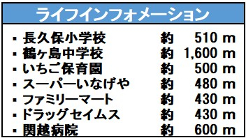 | 交通 | 坂戸駅まで 徒歩14分 若葉駅まで 徒歩33分 一本松駅まで 徒歩33分 |