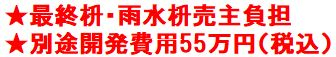 | 特色 | 建築条件なし、調整34条12号、公営水道(接続別途55万円)、プロパンガス、電気、農地転用・開発許可要(別途55万円)、ブロック(別途55万円)、最終枡・雨水枡売主負担、現況渡し、水害ハザードマップ:該当なし | |||||||||||||||||