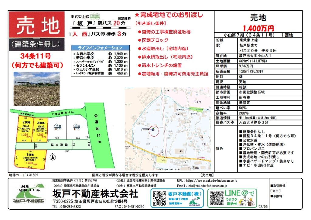 ・価格 1画地 1,400万円(約141坪)